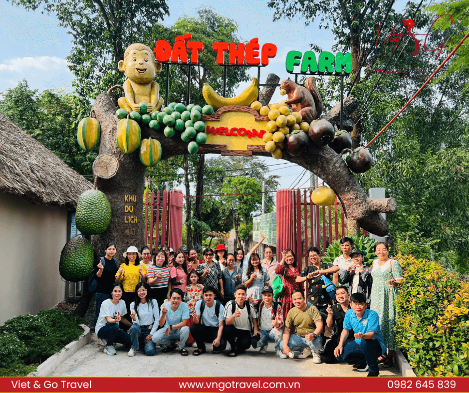 Điểm đến cuối cùng trong hành trình về nguồn là Khu Du Lịch Đất Thép Farm, nơi mang đến không gian xanh mát, gần gũi với thiên nhiên. Tại đây, Quý Thầy Cô đã có những giây phút thư giãn sau hành trình tìm về lịch sử, trải nghiệm các hoạt động thú vị như tham quan vườn cây ăn trái, thưởng thức ẩm thực địa phương và giao lưu cùng nhau trong không gian yên bình của miền quê Củ Chi.