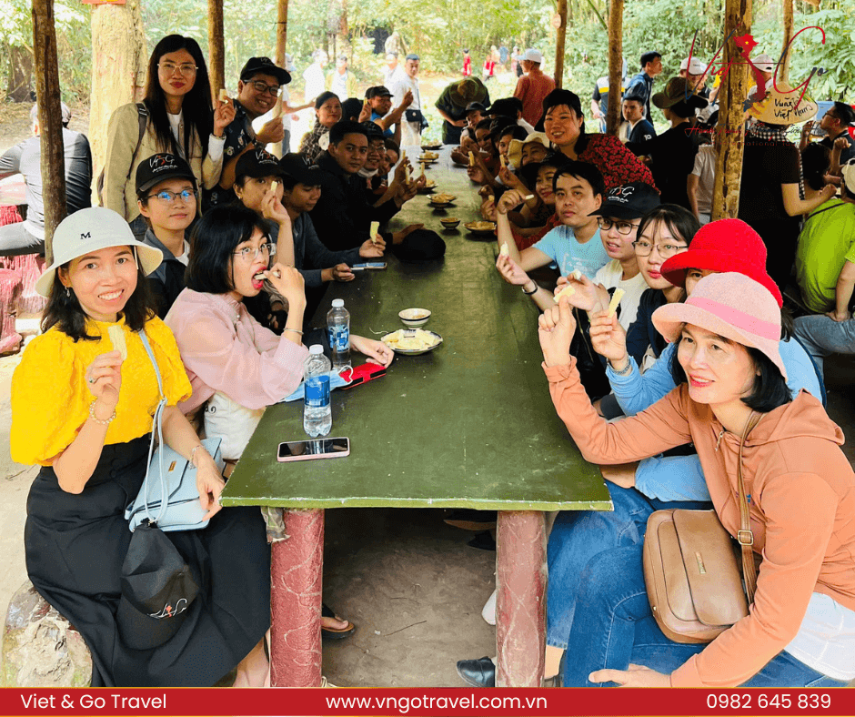 Tiếp tục hành trình, đoàn tham quan Địa Đạo Củ Chi – một trong những di tích lịch sử đặc biệt của Việt Nam. Quý Thầy Cô đã có cơ hội khám phá hệ thống đường hầm chằng chịt dưới lòng đất, nơi từng là căn cứ địa vững chắc của quân và dân ta trong thời kỳ kháng chiến.