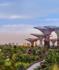 Kỳ quan Gardens by the Bay (Những khu vườn bên Vịnh) đây là khu vườn nhân tạo rộng hơn 100ha, có hơn 250.000 loài thực vật quý hiếm, với các Siêu cây khổng lồ lấy năng lượng mặt trời vào ban ngày và tỏa sáng vào ban đêm. Từ đây Quý khách có thể chụp hình toàn cảnh “Chiếc du thuyền” nằm ở độ cao 200m trên đỉnh của ba tòa nhà khách sạn Marina Bay Sands.